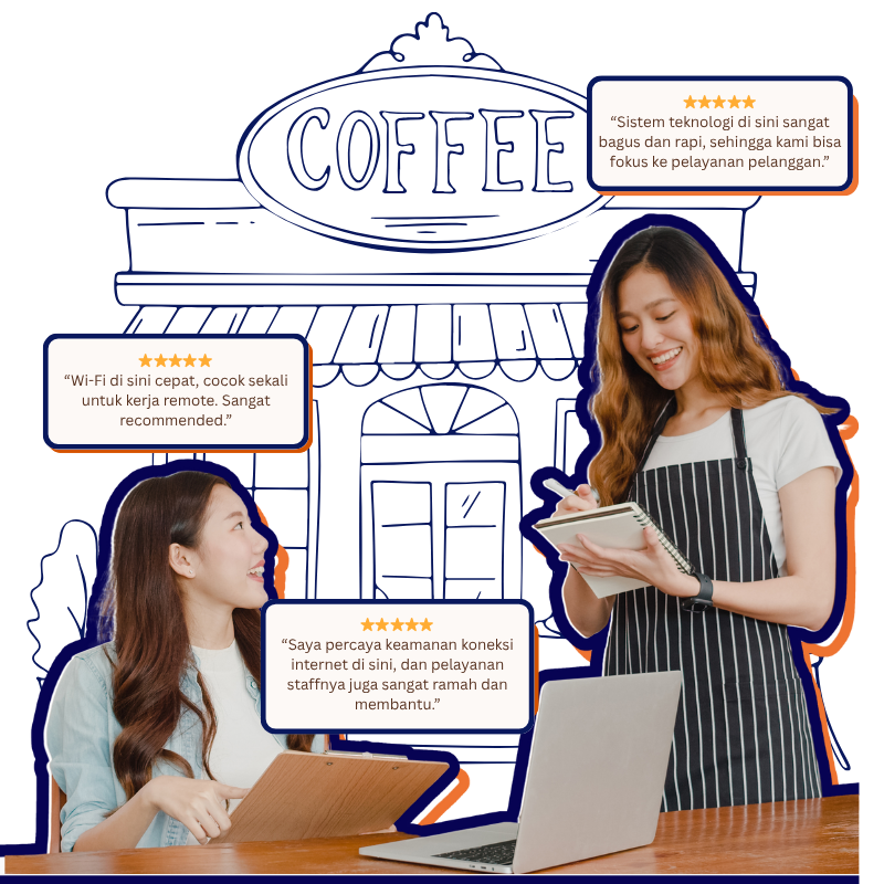 Mulai dari vila, hotel, kafe hingga co-working space, kami telah mendukung berbagai bisnis yang mengandalkan koneksi internet kuat, sistem yang aman, dan solusi digital yang cerdas