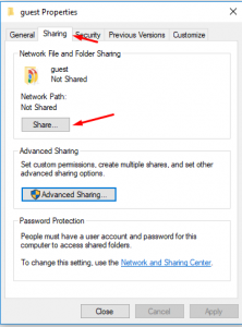 - Selanjutnya kita langsung share file/folder, Pilih folder yang ingin Anda share kemudian klik kanan pada folder itu pilih properties.Kemudian pada halaman properties pilih tab sharing lalu pilih tombol “share”.