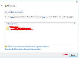 - Setelah itu akan dapat konfirmasi Your Folder is Shared, kemudian klik Done.