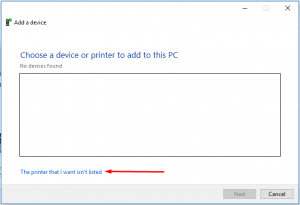 - Setelah terbuka cari di bawah ” the printer that I want isn’t listed ” kemudian klik
