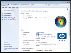 - Buka Control Panel ,klik icon System dan klik menu System protection.
