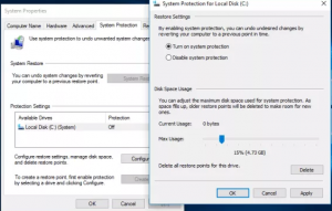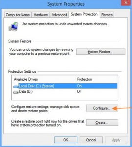 - Setelah masuk pilih Configure, lalu klik Turn On System Protection